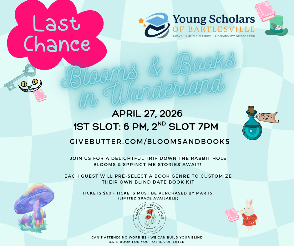 Blind date book bar last call! 4/27/2026 from 6-7pm or 7-8pm. Get your tickets here.