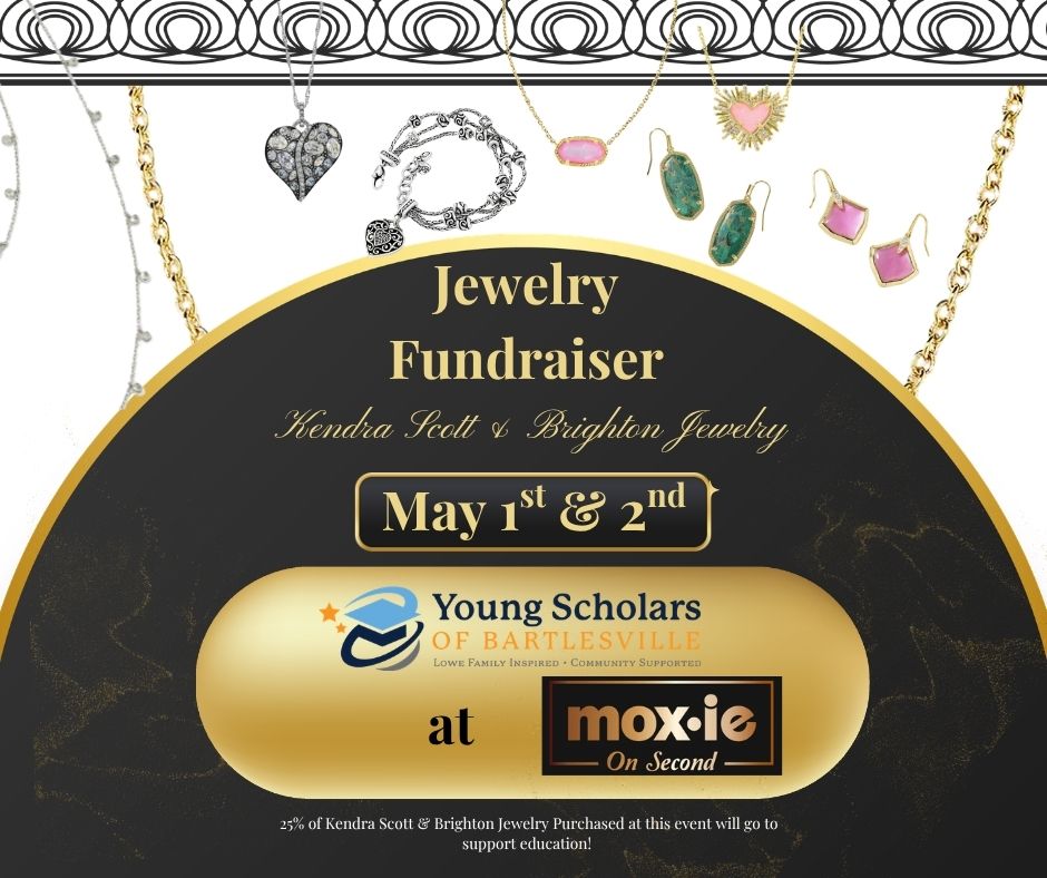 25% of Kendra Scott & Brighton Jewelry purchased goes to support education at Moxie on Second May 1st and 2nd. We'll see you there!